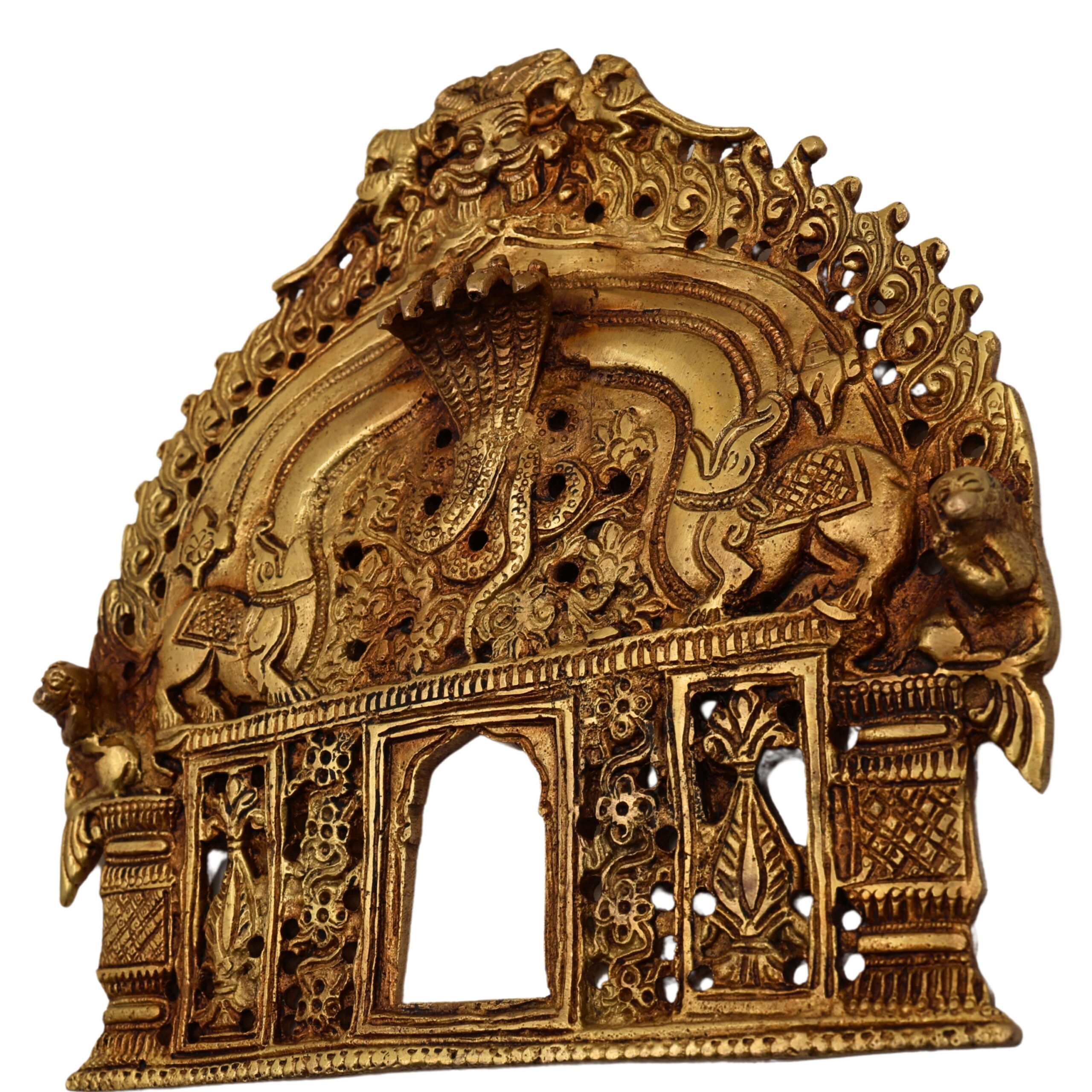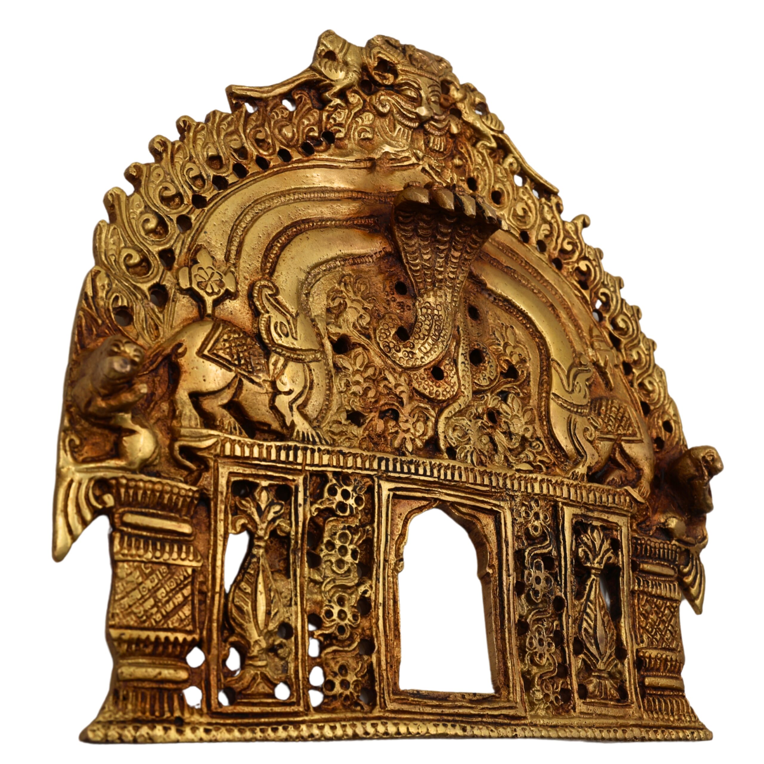 Brass Prabhavali, Tiruvasi, Thiruvachi, Deity arch frame, Temple backdrop, Arch for idol, God frame halo, Prabhamandala, Wall hanging Prabhavali, Makara Torana, Mandapam arch, Decorative brass aura, Traditional pooja frame, Yali arch design, Spiritual decor, God idol backplate, Prabhavali for home temple, Sacred arch for murti.