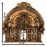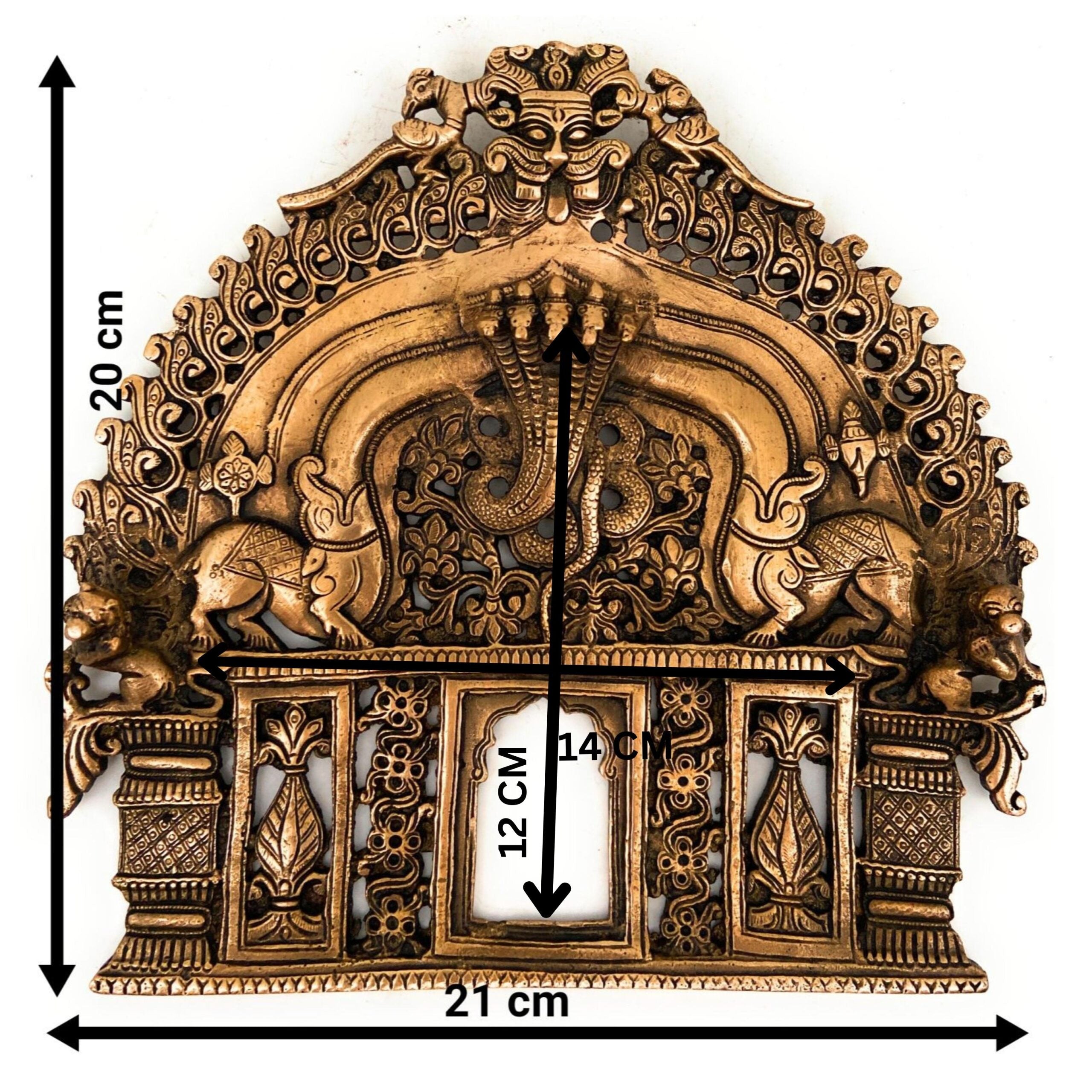 Designed to serve as a temple backdrop, spiritual wall hanging, or pooja decor, this piece reflects timeless symbolism through elements like Makara Torana, Kirtimukha, and Yali motifs. Whether placed behind a murti in your home mandir, mounted on a wall, or used in festive altar setups, it serves as an ideal decorative aura frame for any sacred setting.