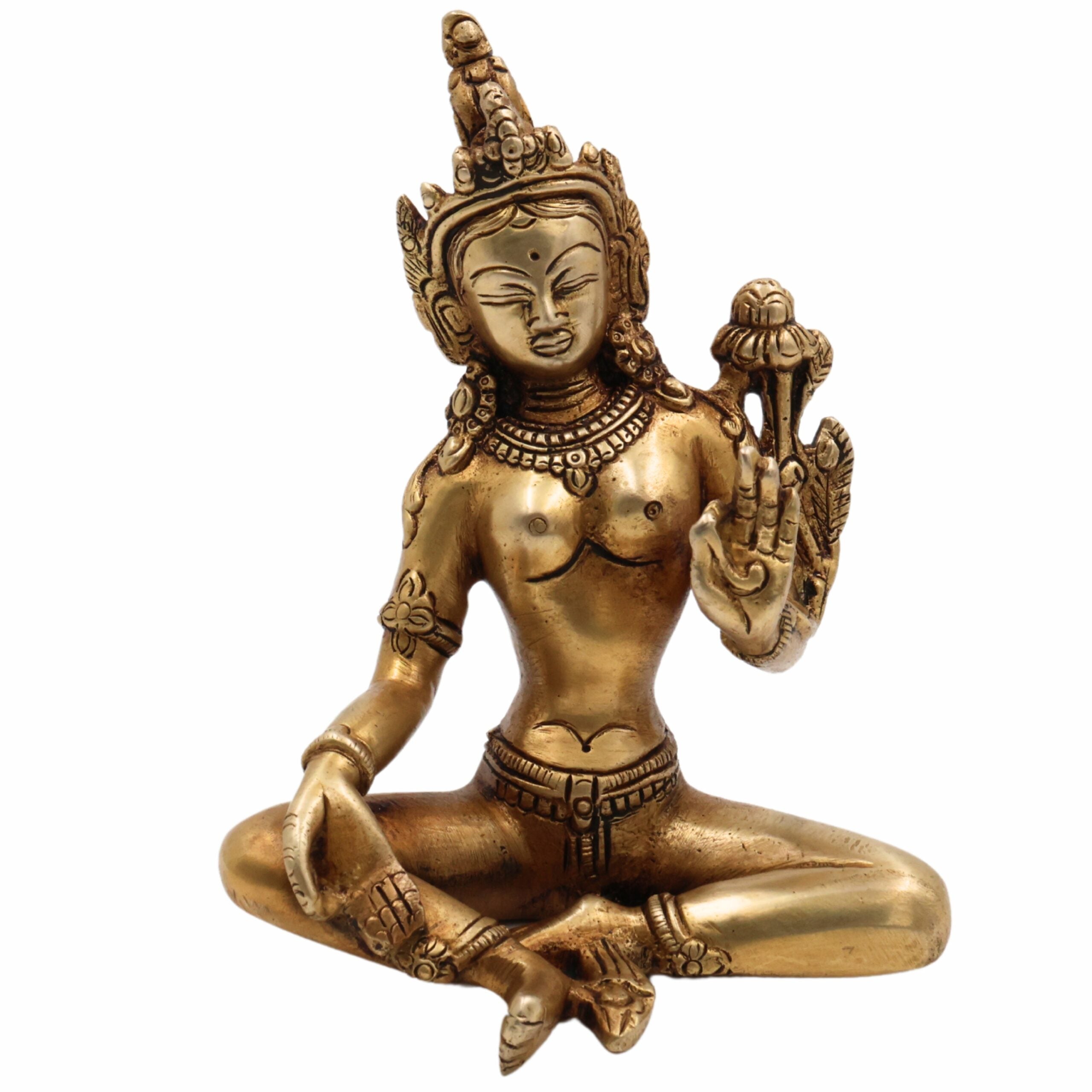 Handcrafted Brass Tara Maa Idol – Mahavidya Tara Devi | Ugra Tara | Neela Saraswati | Buddhist Hindu Goddess Statue for Pooja, Home Temple & Decor,Gold, 5.5 Inch, 1 Piece