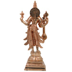 This exquisite idol of Saraswati is meticulously handcrafted by skilled artisans using time-honored South Indian metalcraft traditions. Sculpted in fine bronze, the form reflects classical Chola art aesthetics, with elegant proportions, serene expression, and detailed ornamentation. The Veena Vadini posture symbolizes harmony, learning, and creative flow, making this sculpture spiritually powerful and visually refined.