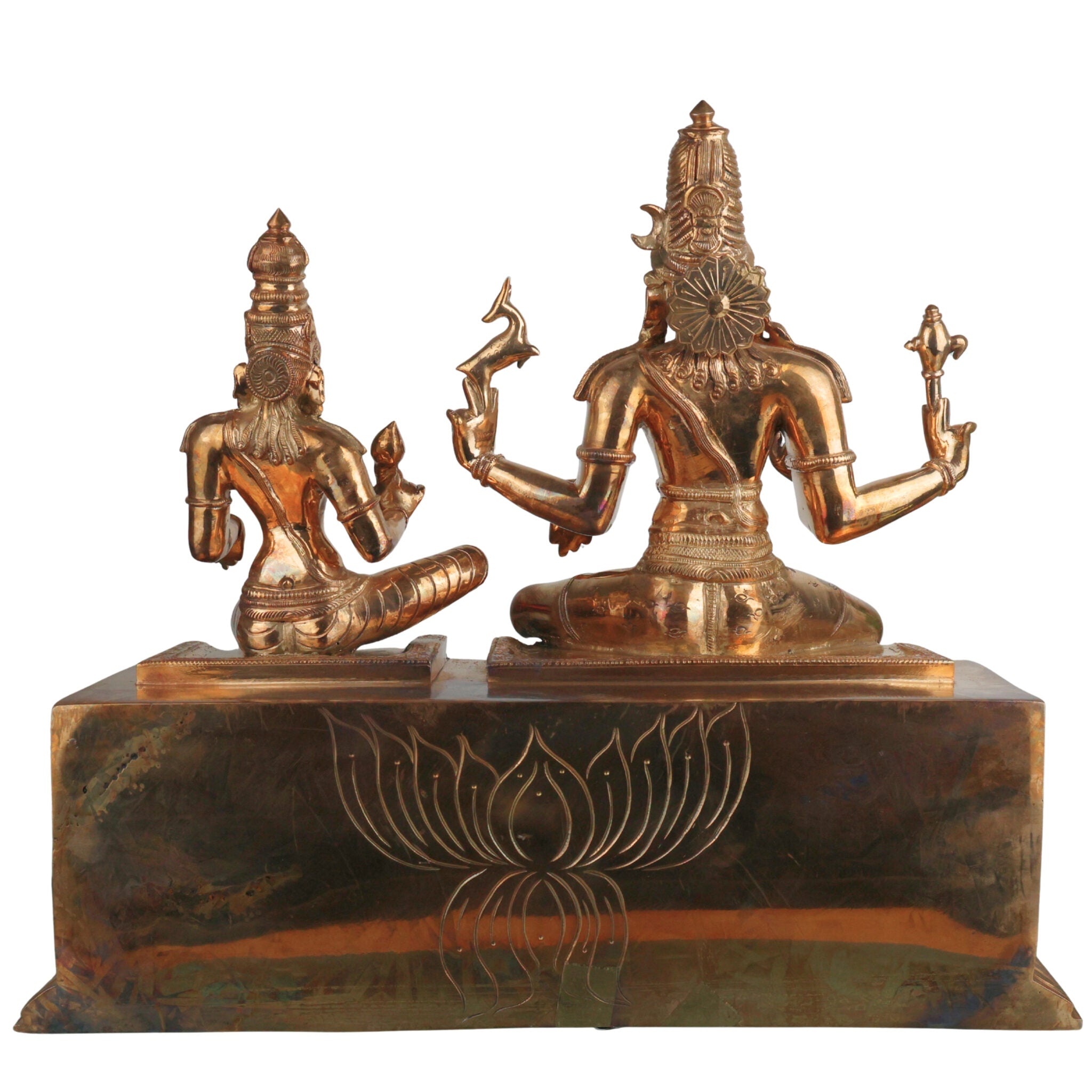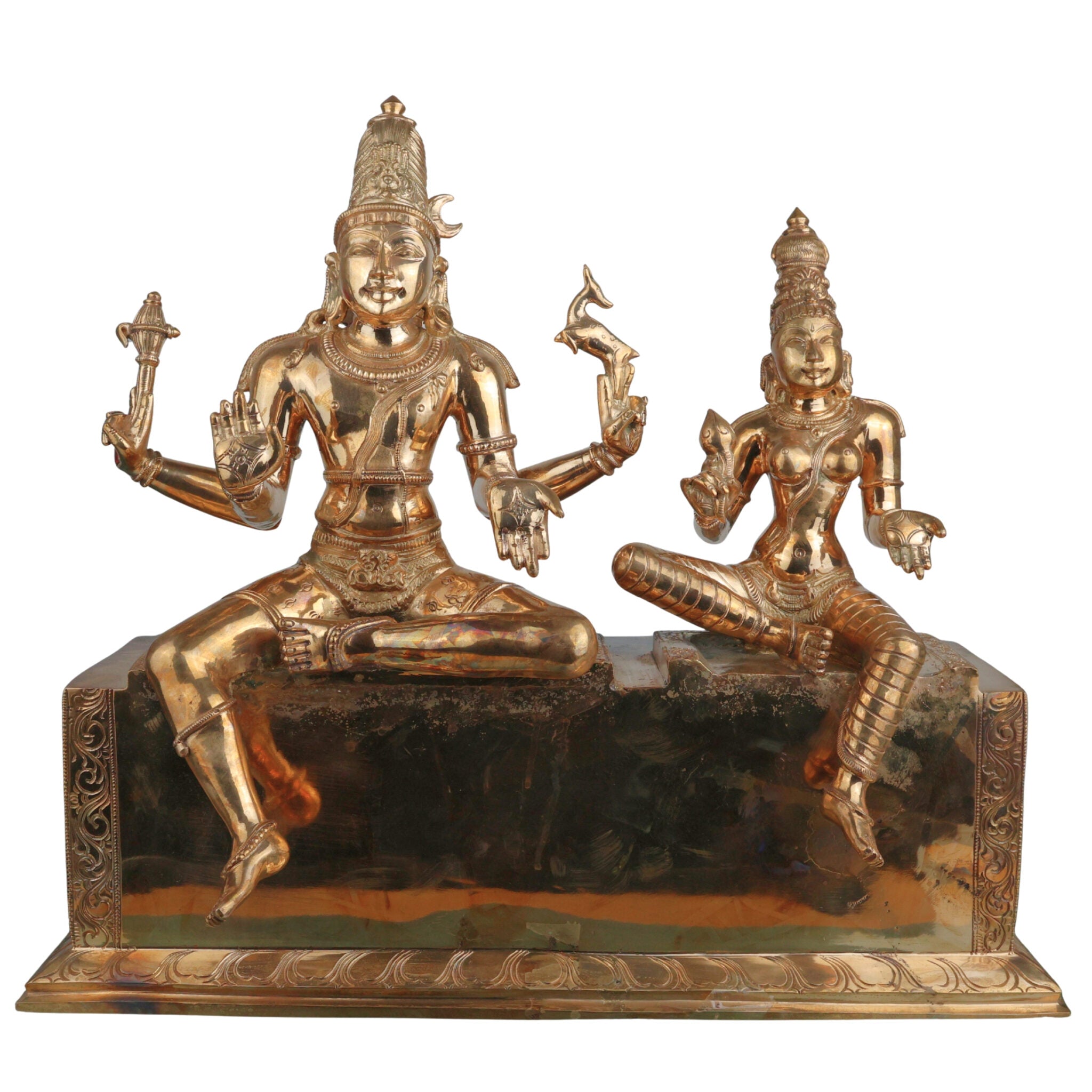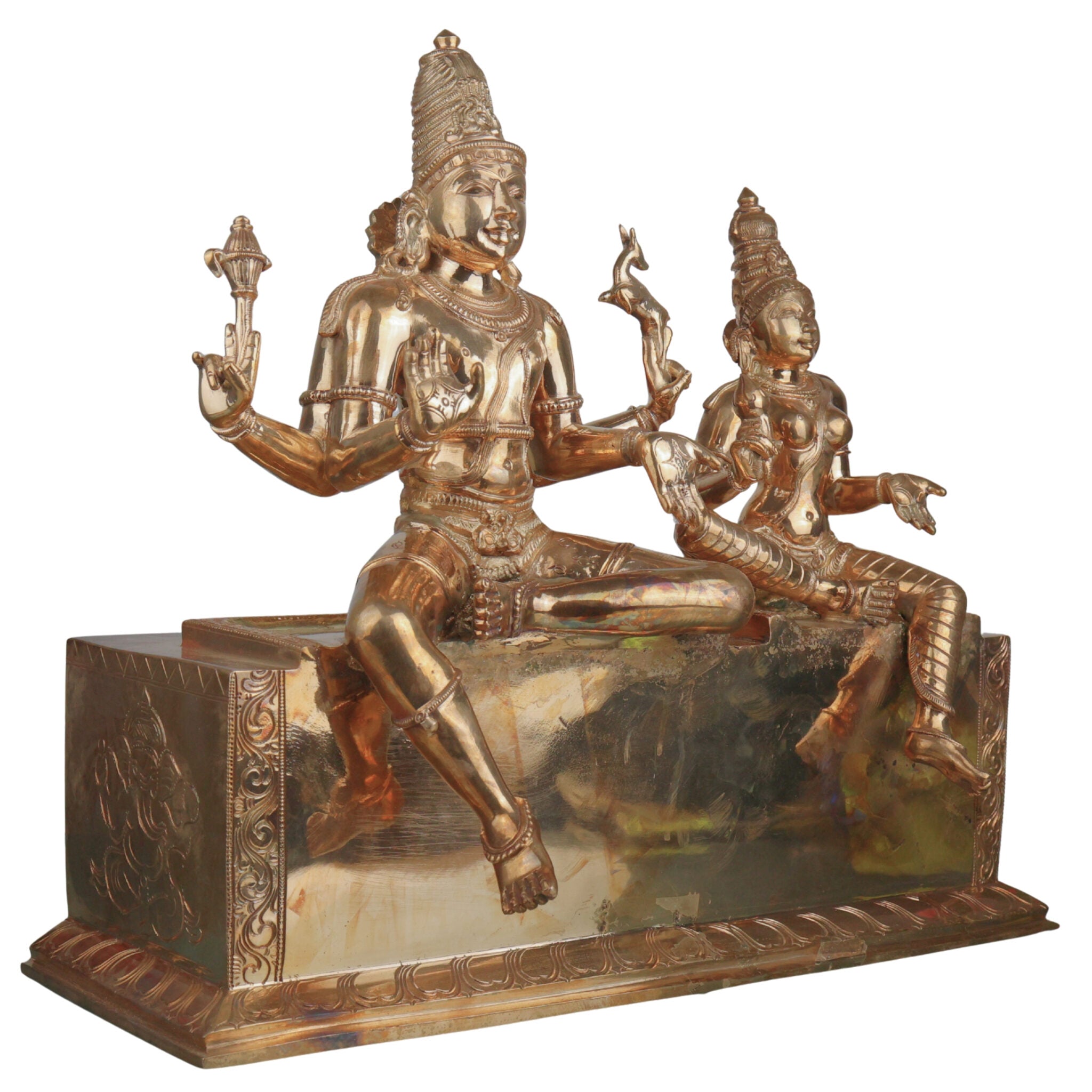 Divine Bronze Shiva Parvathi Sculpture, Panchaloha Umamaheshwara Vigraham in Chola Art Tradition