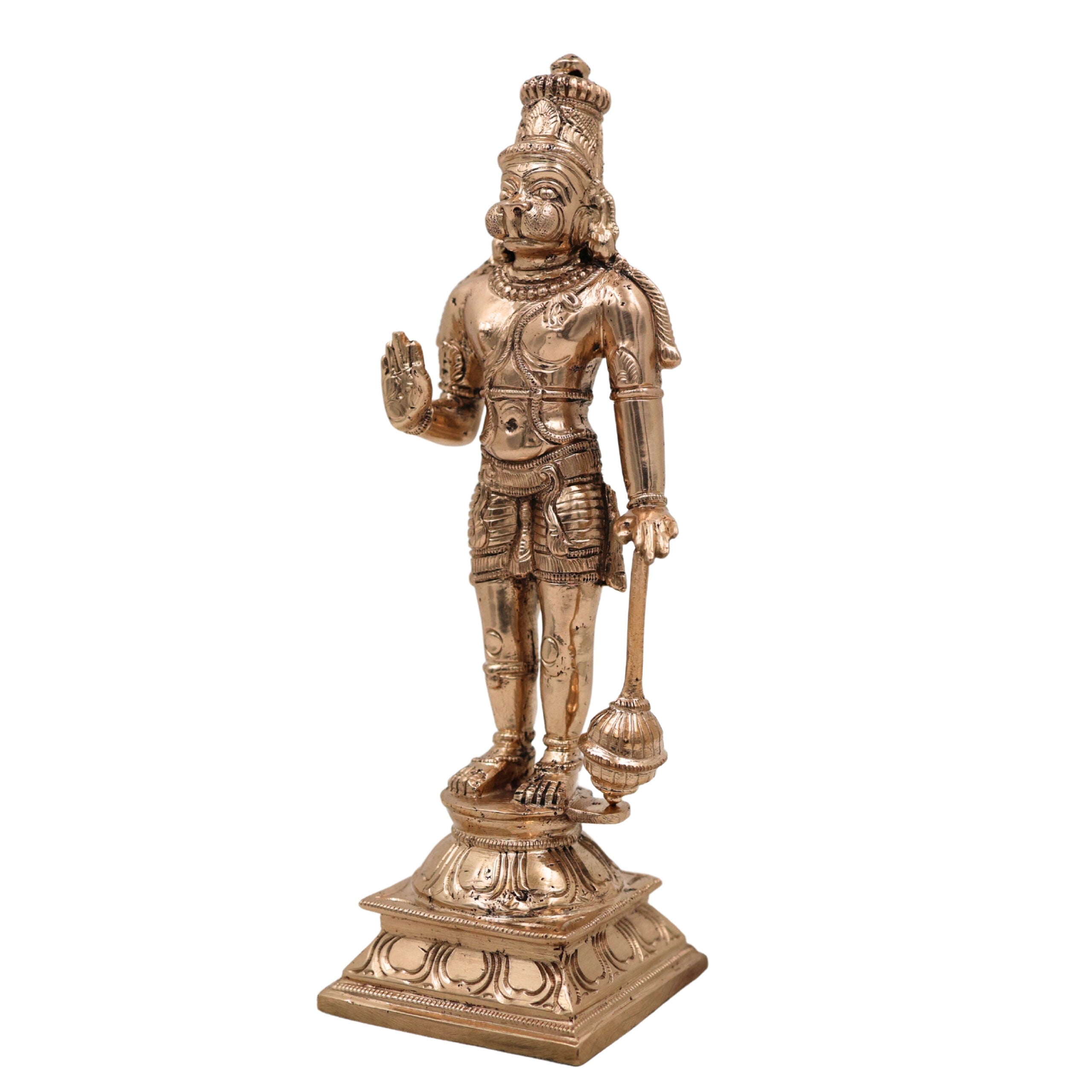 Bhunes Panchaloha Hanuman Idol – Exquisite Handmade Bajrangbali Murti for Home & Temple, Gold, 9.5 Inch, 1 Piece